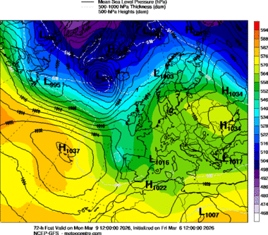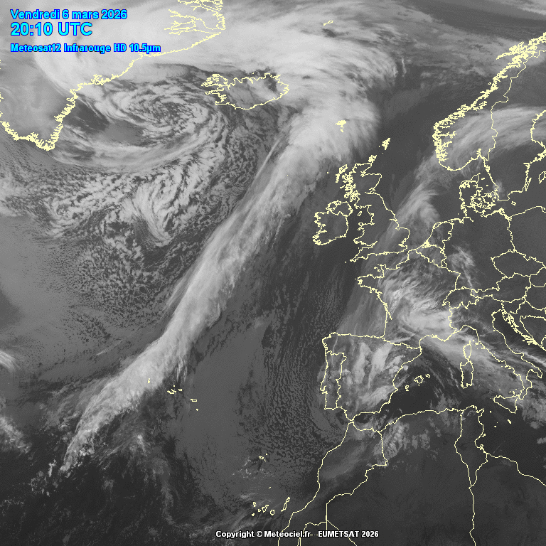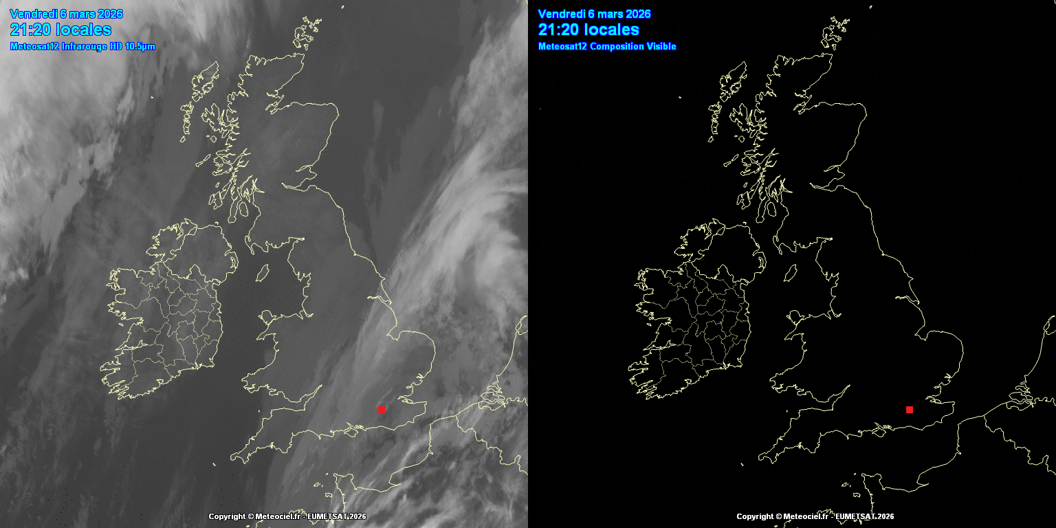 Visable (daytime) and Infrared (nightime) satellite image with 3 hour animation