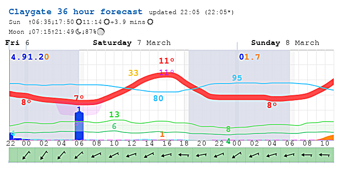 Rainfall radar animation around Claygate in last hour